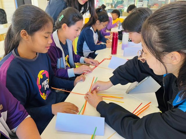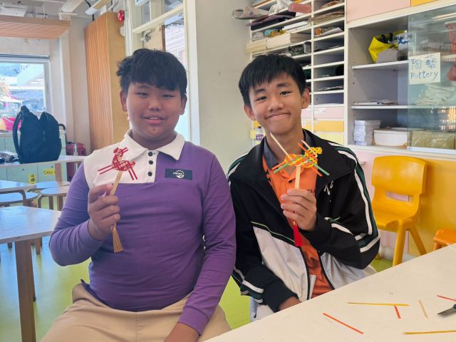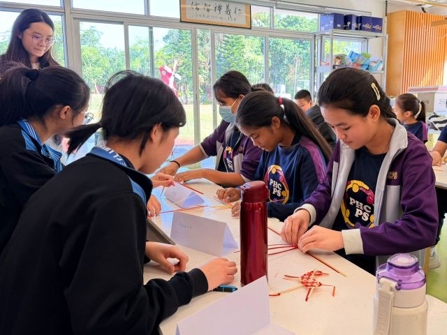 At the beginning of the activity, our school’s social service prefects thoughtfully designed icebreaker games to break the ice. In relaxed interaction, the initial awkwardness melted away, and smiles of friendship blossomed on every face. Afterwards, our prefects started with the familiar Chinese cultural custom of the twelve zodiac animals, working with the senior students to make ‘bamboo-woven horse bookmarks.’ They explained that in Chinese culture, bamboo symbolizes perseverance and upward growth, while the horse represents ambition and success, making abstract cultural concepts concrete and tangible. During the crafting process, our prefects patiently guided the students, facilitating cultural exchange and from initial awkward greetings to seamless teamwork, allowing students from both schools to deeply feel that ‘giving and receiving are equally blessed.’