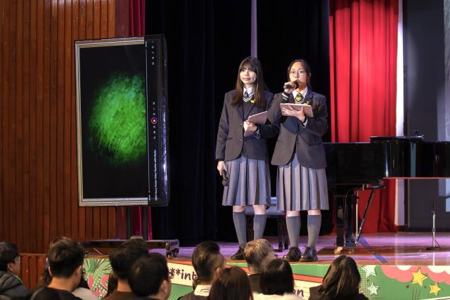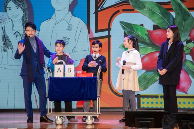 接着進入「樂學及國際化」環節。學校提供豐富多元化活動,緊扣SPIRE(心、體、智、人、情)理念,推行休整日、SMART及Growth Mindset,並透過三星計劃(人才庫、星星計劃、生涯規劃)讓學生在快樂中茁壯!尹校長與1D班李悅泓同學、周博雯老師及兩位小學生一起進行「神秘果」實驗,讓苦澀食物瞬間變甜,藉食物科學展示融入IB元素的課程,充滿驚喜與啟發!