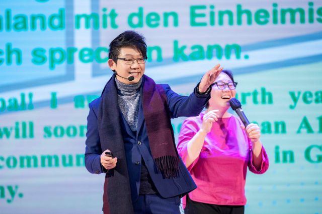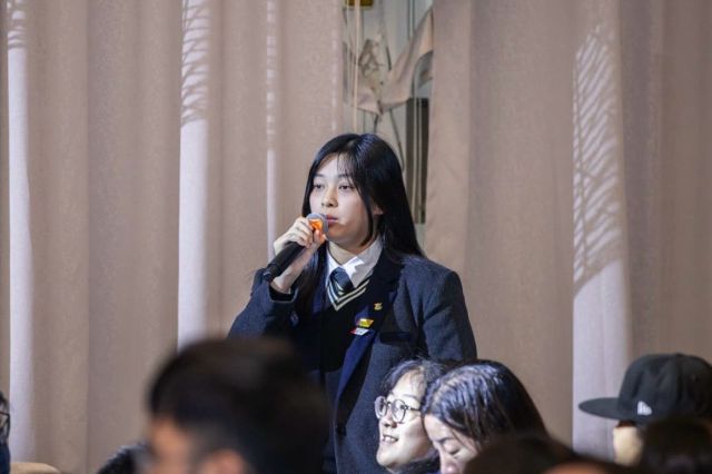 學校積極推動國際化發展,開設外語部與DSE課程並行,讓學生有更多選擇拓展視野。目前,每5位信義學生中就有1位修讀外語!在「外語劇場」環節,由3D班孫孝怡、1D班李小雪、4E班梁雅柔、3D班黃浩翹、4B班徐源、2E班呂玥璇等同學,聯同尹校長及鄧副校長一同演出!同學們流利又自信的外語表現,瞬間驚艷全場家長,掌聲不停!鄧副校長更戴上智能眼鏡進行即時翻譯,科技感滿分,贏得熱烈喝采!