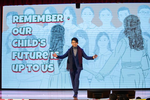 講座由2C班黃智瑩同學彈奏優美的“Remember”開場,尹校長走上T型舞台,生動詮釋「T型人才」—一專多能的概念。他分享孩子的未來,就像家長與學校共同當雕刻師,一筆一筆細心雕琢而成。學校推動教育4.0,重點培養Self-Paced Learning、Digital Skills、Global Citizenship、Collaborative Learning及Interpersonal Skills,讓學生全面成長。