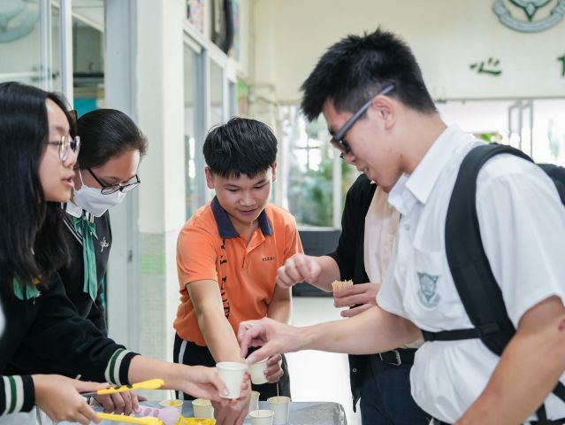 Last week at the end of the school day, Principal Mr. WAN along with our student leaders, personally handed out freshly steamed fish balls and siu mai to the students. Some students, carrying their backpacks, walked over with delighted smiles, while others stopped to accept this heartwarming treat.