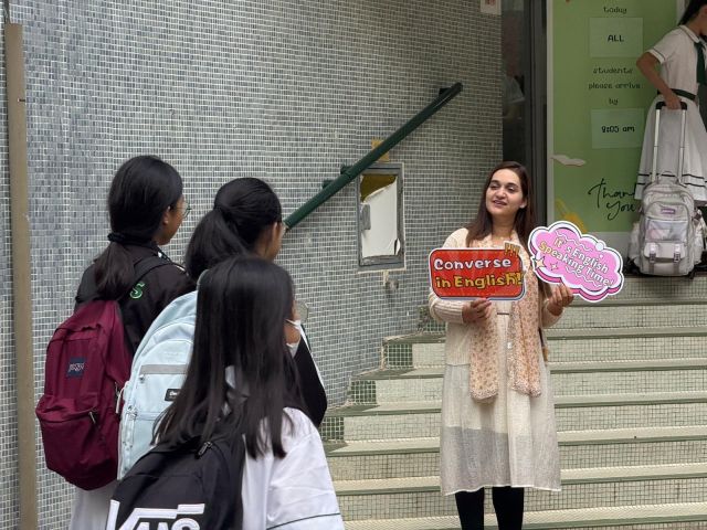 學生們踴躍排隊與校長、副校長、助理校長、老師及英語大使們交談,這些互動不僅富有成效,更加深了彼此之間的尊重與理解。學生們英語會話護照上的每個簽署,均代表每一個意義非凡的對話,大大提升了他們的自信及歸屬感。