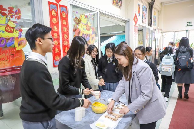 As school finished for the day, cups of steaming hot buttered corn appeared across the campus. The International Cultural Exchange Prefects transformed into a heartwarming “supporting team”, personally delivering the savory snacks into the hands of their fellow schoolmates.