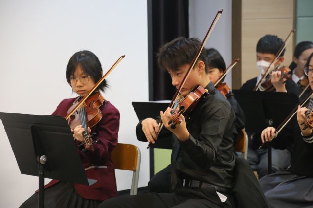 To promote musical and cultural exchange between young people in Guangzhou and Hong Kong, our school welcomed a visiting exchange group from our sister school, Guangzhou No. 3 Middle School, from November 20th to 22nd. The group consisted of 28 teachers and students from Guangzhou (including 4 Chinese dance students and 20 orchestral students). YLLSS teachers and students extended their hospitality by arranging a rich itinerary for the group, aiming to enhance the musical literacy of students from both schools and strengthen the friendship between them!