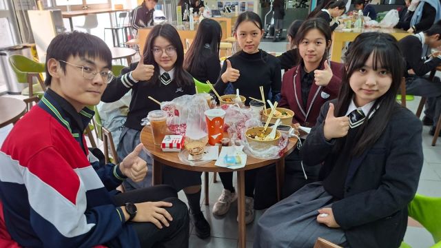 During the exchange, our students paired up with their counterparts from Guangzhou No. 3 Middle School to experience a full day of our classes, allowing the No. 3 Middle School students to immerse themselves in the learning life of a Hong Kong secondary school. During lunchtime, our music leaders took their partners out for a meal, enjoying delicious food while strengthening their bondings! Furthermore, the teachers and students from Guangzhou No. 3 Middle School experienced YLLSS’s diverse after-school programs, including powerful and beautiful Chinese dance, traditional Chinese music, majestic Chinese drumming, and the elegant charm of Chinese ink painting, experiencing the profound appeal of Chinese culture and art. During their after-school activities on Art Friday, they also participated in a highly creative vocal percussion workshop, experiencing our ‘Happydemic’ educational philosophy.