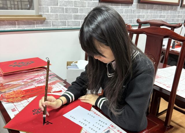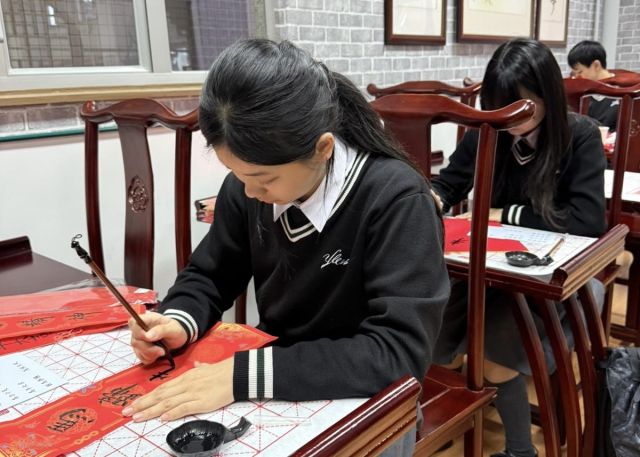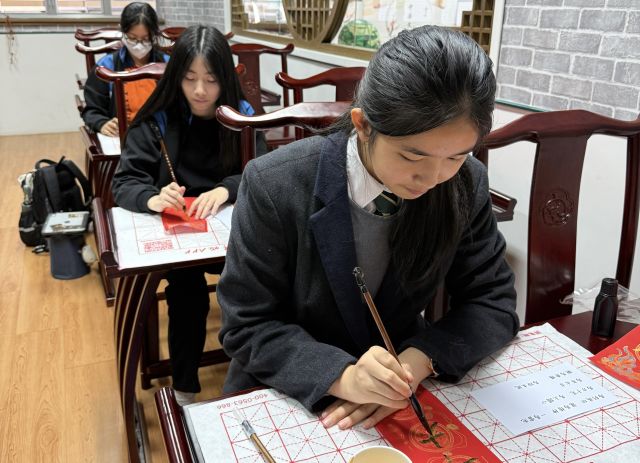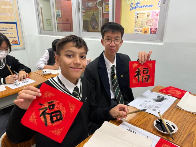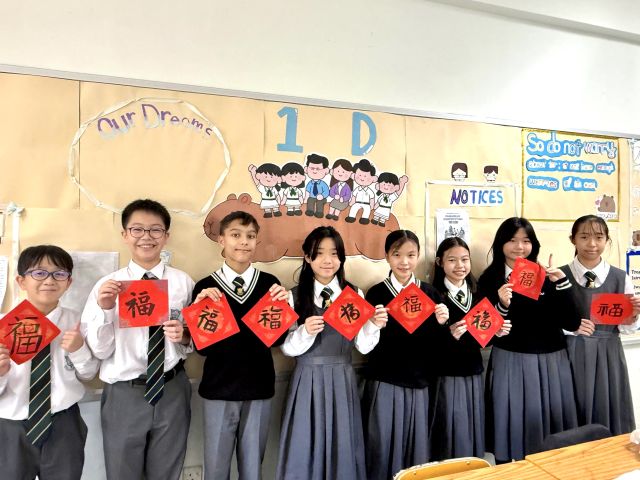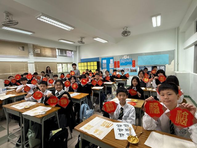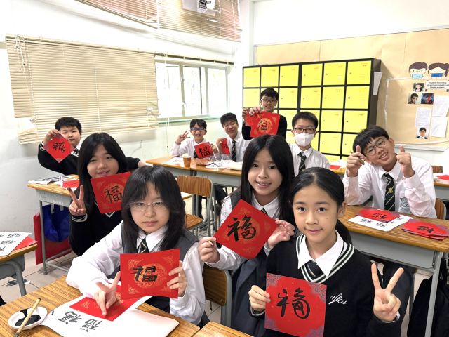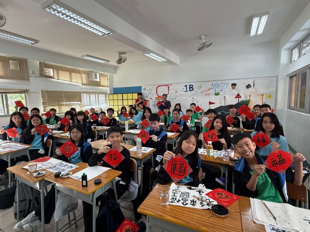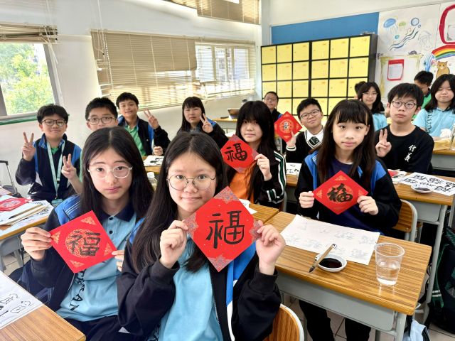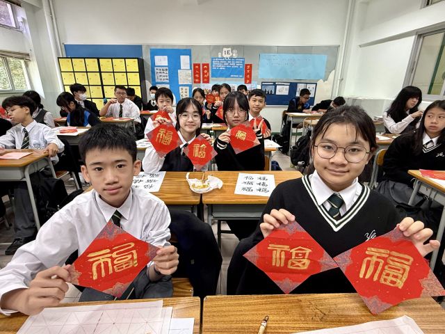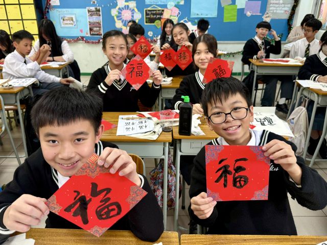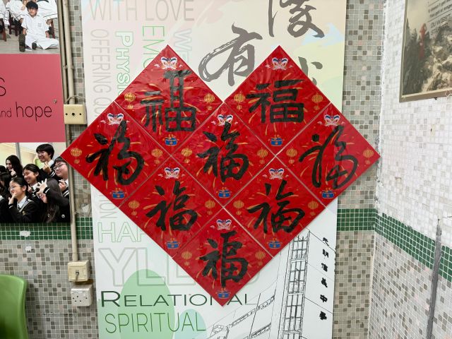 The warmth of Christmas, overflowing with God’s grace, has not yet faded, and the brand new Year of the Horse is about to arrive with the rising sun. Joy permeates throughout the campus. Secondary One students write “福” (good fortune) with Chinese brushes, their strokes brimming with happiness; senior students carry decorations and hang scrolls, carefully adorning every corner of the campus; the Chinese Culture Ambassador wields his brush to create Spring Festival couplets, bringing a vibrant spirit to the campus; our Principal also personally writes “福” as the character for “heart,” filling the students with heartfelt blessings.