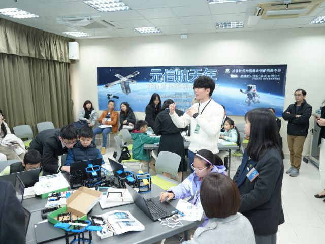 走進校園便能感受到滿滿巧思,尹校長親手繪製的1:1學生手繪板十分吸睛!藉由AR技術尋找隱藏的Secret code,如同開啟一場趣味探險;STEAM機械人互動遊戲、圖書館有聲書故事體驗等環節各有特色。其中,作為本校「元信航天年」的重點活動 – 航天主題課程透過航探小盒子可體驗各類航天科技,學習衛星程式編寫的基礎知識,還能近距離觀察學校衛星的「原型模型」,並親手製作屬於自己的「小衛星」專屬模型,在實踐中探索太空科技的奧秘!