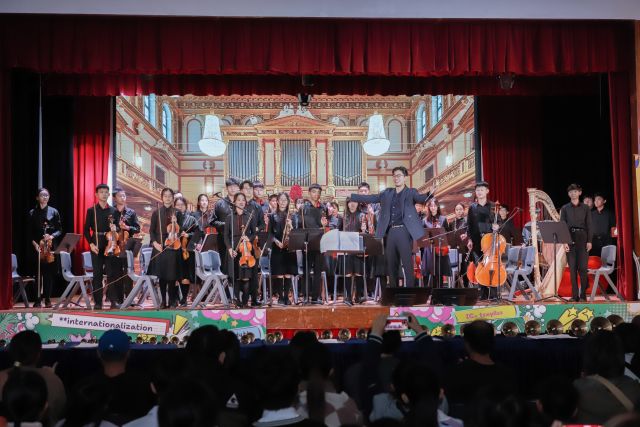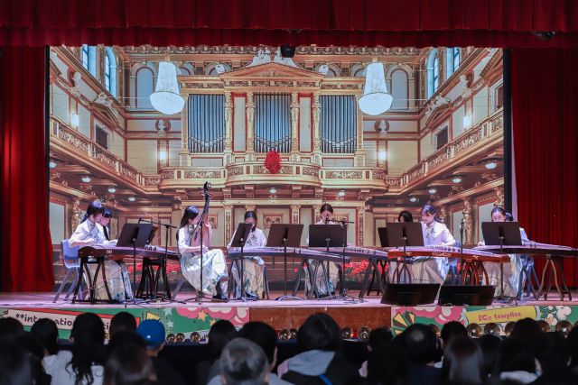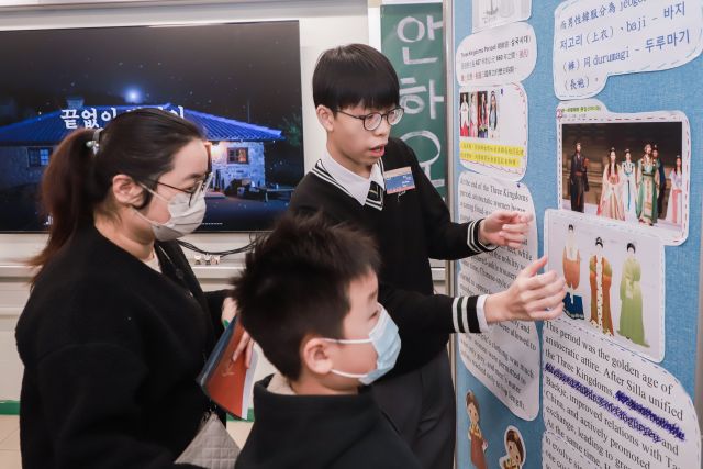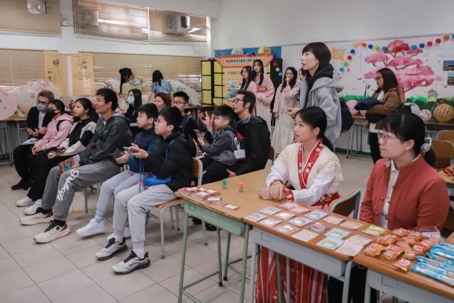 四樓禮堂打造的「Festival Fusion Fiesta」專區,匯集了豐富的國際文化體驗:英文科與外籍老師帶來愛爾蘭、法國、英國的特色節日介紹,外語部的同學準備了日語、韓語、德語、西班牙語、法語的互動小遊戲,參與者還能試穿日本、韓國的傳統服飾,在沉浸式體驗中喚起對外語與異國文化的興趣!